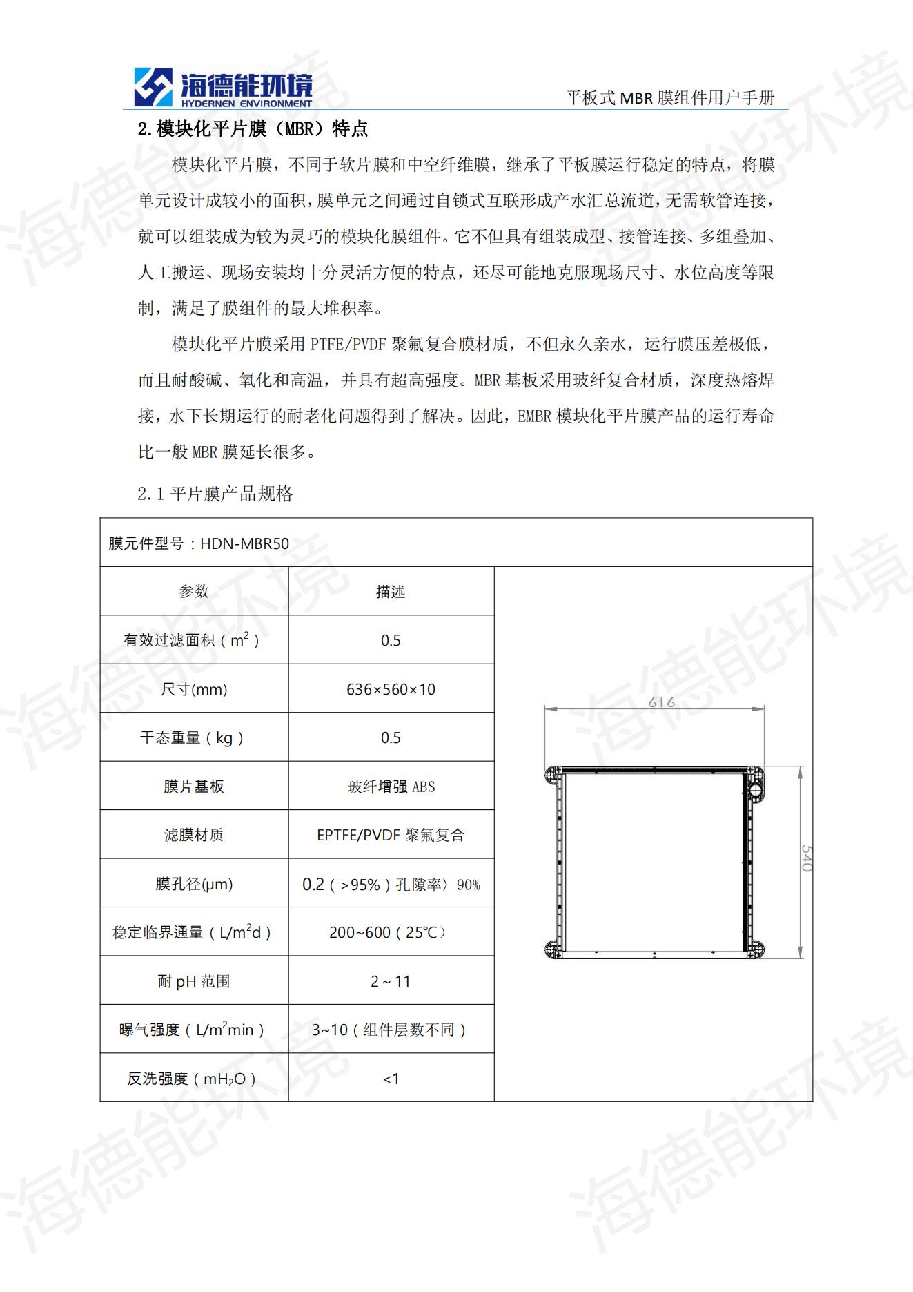 平板式MBR膜参数